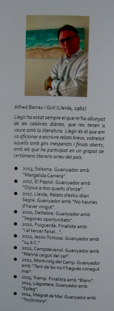 La majoria de textos m’han agradat molt, tant que si em preguntéssiu quin m’ha agradat menys no us ho sabria dir. En un hipotètic jurat del certament, potser hauria escollit El retorn, d’Albert Lorente, per la seva subtilesa, potser Àngela de Montserrat Alay pel seu binomi entre la realitat objectiva i la subjectiva, o potser l’ Arquitectura d’un retorn pel seu sentiment, de Maria Josep Vilà i Carnicero (de qui ja havia llegit anteriorment El fil vermell, que també em va agradar), De Nòmades i turistes de Carles Castell Puig que ens parla de la baixesa del turisme. D’Alba Fort amb el seu conte I si…, que ens proposa riscos de l’intercanvi de cases, he de constatar que tot i que sembla que resideix a Torrelles, és curiós que no hi hagi vestigis seus en cap altra concurs de l’Ateneu de Torrelles dels que jo he llegit, i amb això vull advertir d’una futura gran escriptora que potser tornarem a veure ni que sigui en futures participacions al premi literari de l’Ateneu de Torrelles. També m’han agradat tant, Membre fantasma de Meritxell Franciscà o Ona, alguna dona japonesa beu cervesa d’Antoni Guinovart i Sang Terra i Misèria de Francesc Sabaté.