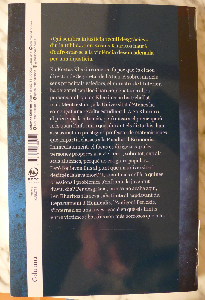 En Kostas Kharitos encara fa poc que és el nou director de Seguretat de l’Àtica. A sobre, un dels seus principals valedors, el ministre de l’Interior, ha deixat el seu lloc i han nomenat una altra persona amb qui en Kharitos no ha treballat mai. Mentrestant, a la Universitat d’Atenes ha començat una revolta estudiantil. A en Kharitos el preocupa la situació, però encara el preocuparà més quan l’informin que, durant els disturbis, han assassinat un prestigiós professor de matemàtiques que impartia classes a la Facultat d’Economia. Immediatament, el focus es dirigeix cap a les persones properes a la víctima i, sobretot, cap als seus alumnes, perquè no era gaire popular… Però l’odiaven fins al punt que un universitari desitgés la seva mort? I, anant més enllà, a quines pressions i problemes s’enfronta la joventut d’avui dia? Per desgràcia, la cosa no acaba aquí, i en Kharitos i la seva substituta al capdavant del Departament d’Homicidis, l’Antigoni Ferlekis, s’internen en una investigació en què els límits entre víctimes i botxins són més borrosos que mai.