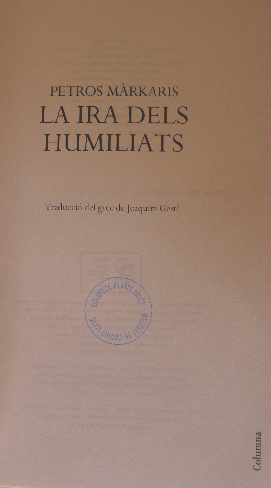Petros Màrkaris és un escriptor grec de novel·la negra d’aquells que pretenen ser els “escriptors nacionals” d’aquesta mena de literatura. A Itàlia tenim Andrea Camilleri o la Donna Leon, a Suècia Camilla Läckberg, a Bèlgica Georges Simenon i a Anglaterra Agatha Christie, però al meu entendre a Petros Màrkaris li falten vitamines per a ser el representat grec. Hi ha posat uns policies, uns assassins, unes víctimes i també uns menjars nacionals, però en general grinyola tot. Per començar ha utilitzat una botifarrada de noms, tants que t’hi perds i fan que la lectura no sigui fluïda: Guikas, Guikas, Elpida Ferlekis, Dimitra Kortidu, Askalidis, Stavrópulos, Dora Iliaku, Làzaros Kekhridis, Nikos Zirakis, Dimitrios Kontzos, Ioanis Karatzakis, Panaiotis Doris, Aléxandros Sukalis, Leónidas Batis, Sotírios Fakinis, Periklis Nakos, Nikolaus Kardakis, Iorgos Kratis, Lefkaditis, Kól·lias, Miltiadis Kekhris Kleon Beratis i moltíssims més, tants que sovint t’atabalen, tot i que els hagis anat apuntant a la llista del laberint.
