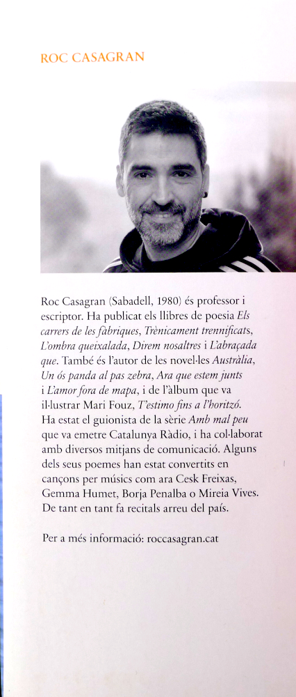 Confesso. Quan llegeixo un llibre escrit per un dona i parla de pensaments, penso “que bones són les dones expressant els sentiments”. I avui, quan ho pensava, de cop em venia la sotragada de saber que no era una dona qui ho explicava sinó en Roc Casagran, un home que utilitzava veu de dona. I ho feia tan bé que em desorientava. Vaja, que és un geni, ho reconec.