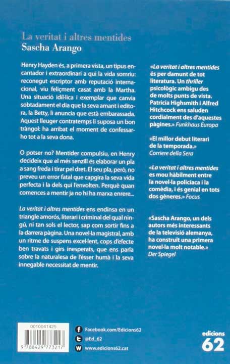 La veritat i altres mentides ens endinsa en un triangle amorós, literari i criminal del qual ningú, ni tan sols el lector, sap com sortir fins a la darrera pàgina. Una novel·la magistral, amb un ritme de suspens excel·lent, cops d’efecte ben travats i girs inesperats, que ens parla sobre la naturalesa de l’ésser humà i la seva innegable necessitat de mentir.